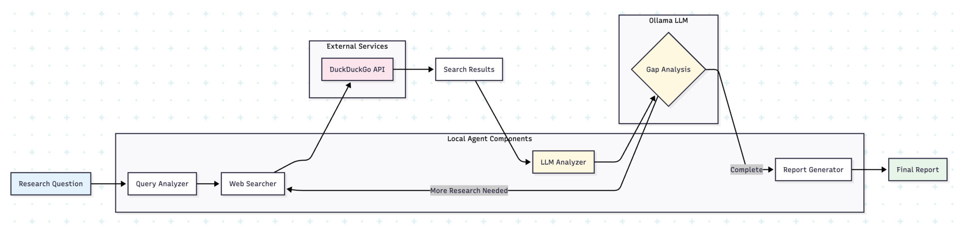 The idea is to build a locally running AI research agent that uses Ollama and small language models to conduct multi-step research tasks autonomously.